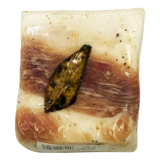 шпик виной хребтовой, чеснок свежий, лавровый лист сухой, рассол вода питьевая, соль пищевая). Возможно наличие следов горчицы, глютена, кунжута, молока, сельдерея, сои.