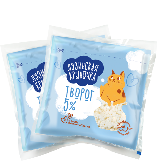 - Творог с м. д. ж. 5 %, пакет 200 г "Лузинская крыночка"
