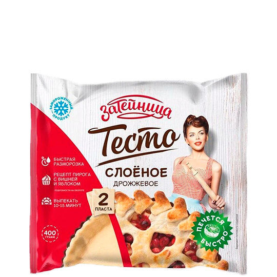 Замороженное тесто слоеное дрожжевое "Затейница" в пластинах 400 г
